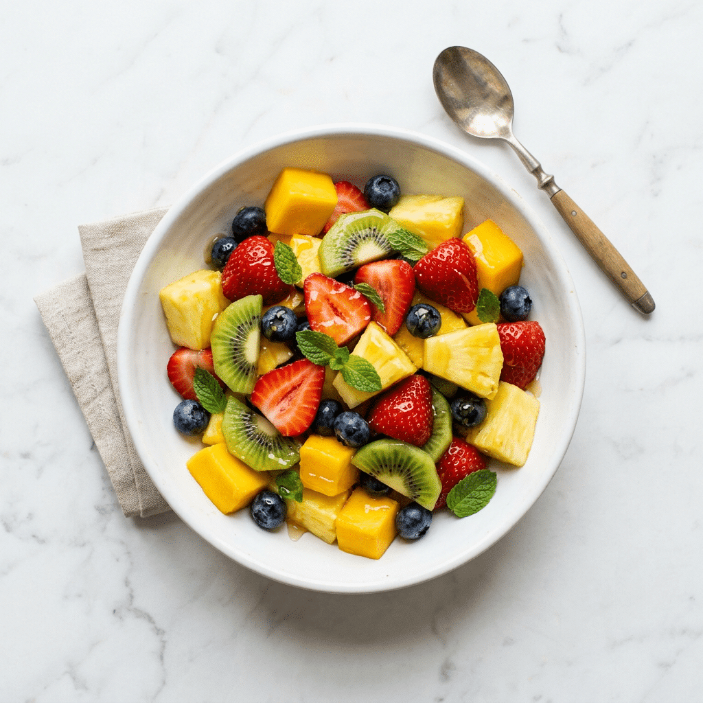 • Combine all fruit in a large bowl and gently toss.